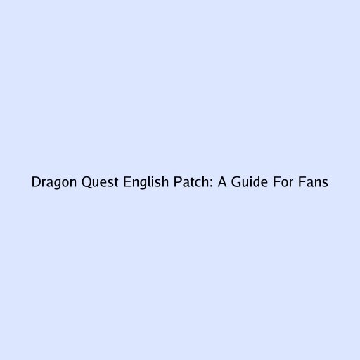 Dragon Quest English Patch: A Guide for Fans