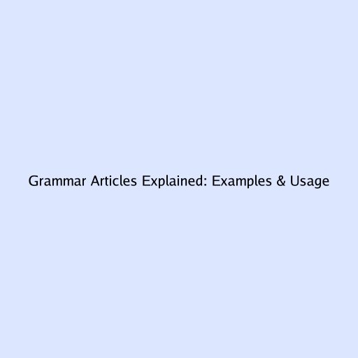 Grammar Articles Explained: Examples & Usage