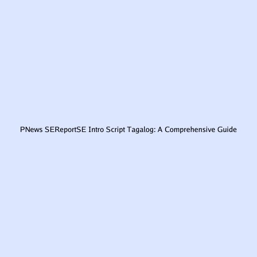 PNews SEReportSE Intro Script Tagalog: A Comprehensive Guide